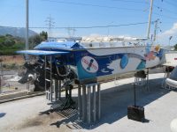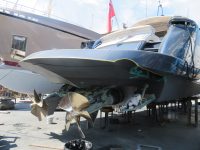- Out-of-water Survey: Inspection of the hull bottom and topsides, moisture absorption measurement (or ultrasonic thickness measurement on steel/aluminum hull), thermography inspection with infrared camera and hammer testing, propellers, propeller shafts, brackets, cutlass bearings, thrusters, stabilizers, zinc anodes, trim tabs, through hull fittings, as well as any other underwater equipment.