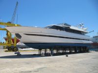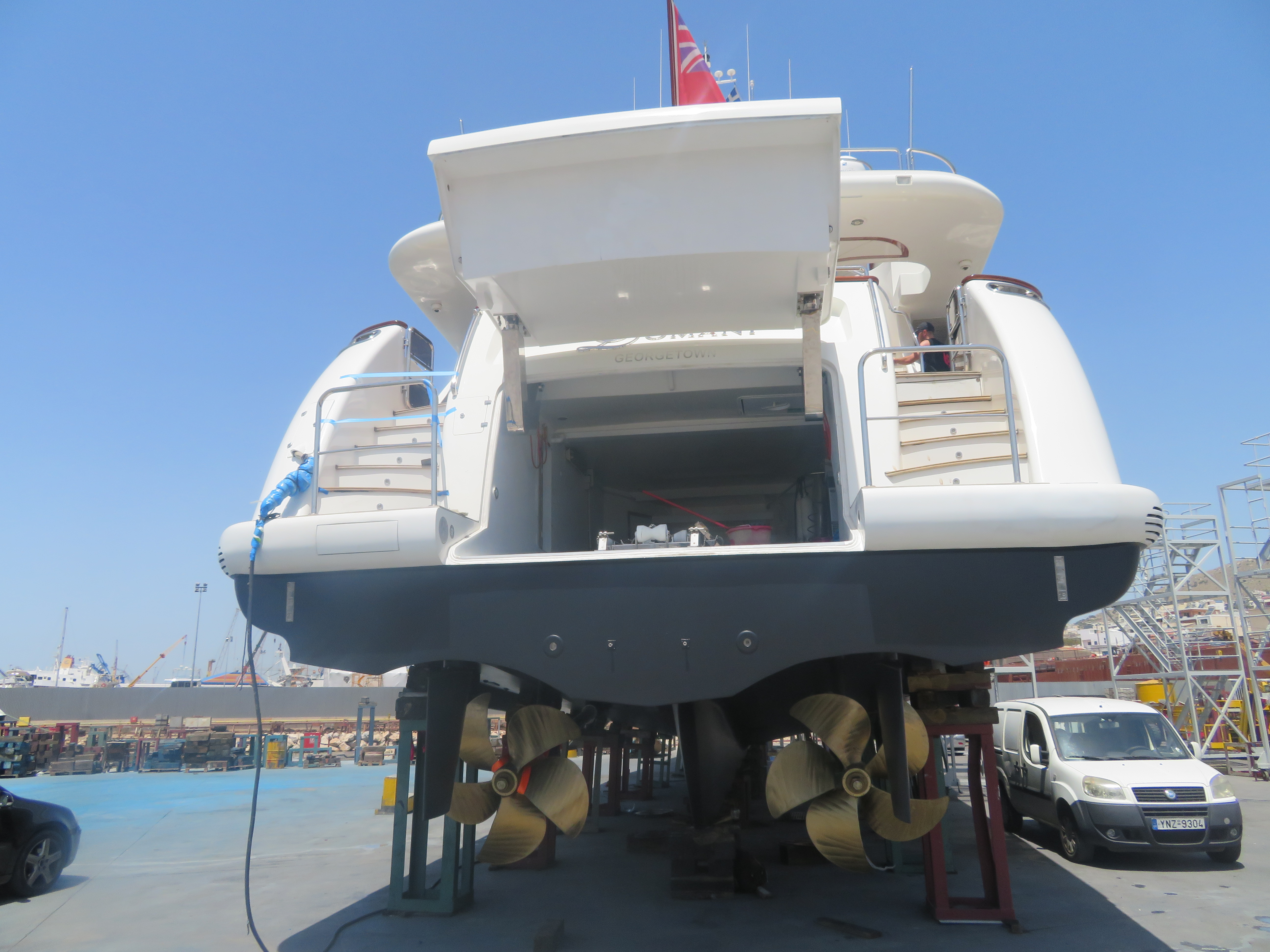 - In-water survey:Survey of the yacht in the marina for inspection of decks, deck equipment, accommodation areas, interior, internal structural components, main engines, generators, all auxiliary machineries’ condition, navigational equipment, electric and piping systems, safety equipment and certificates.